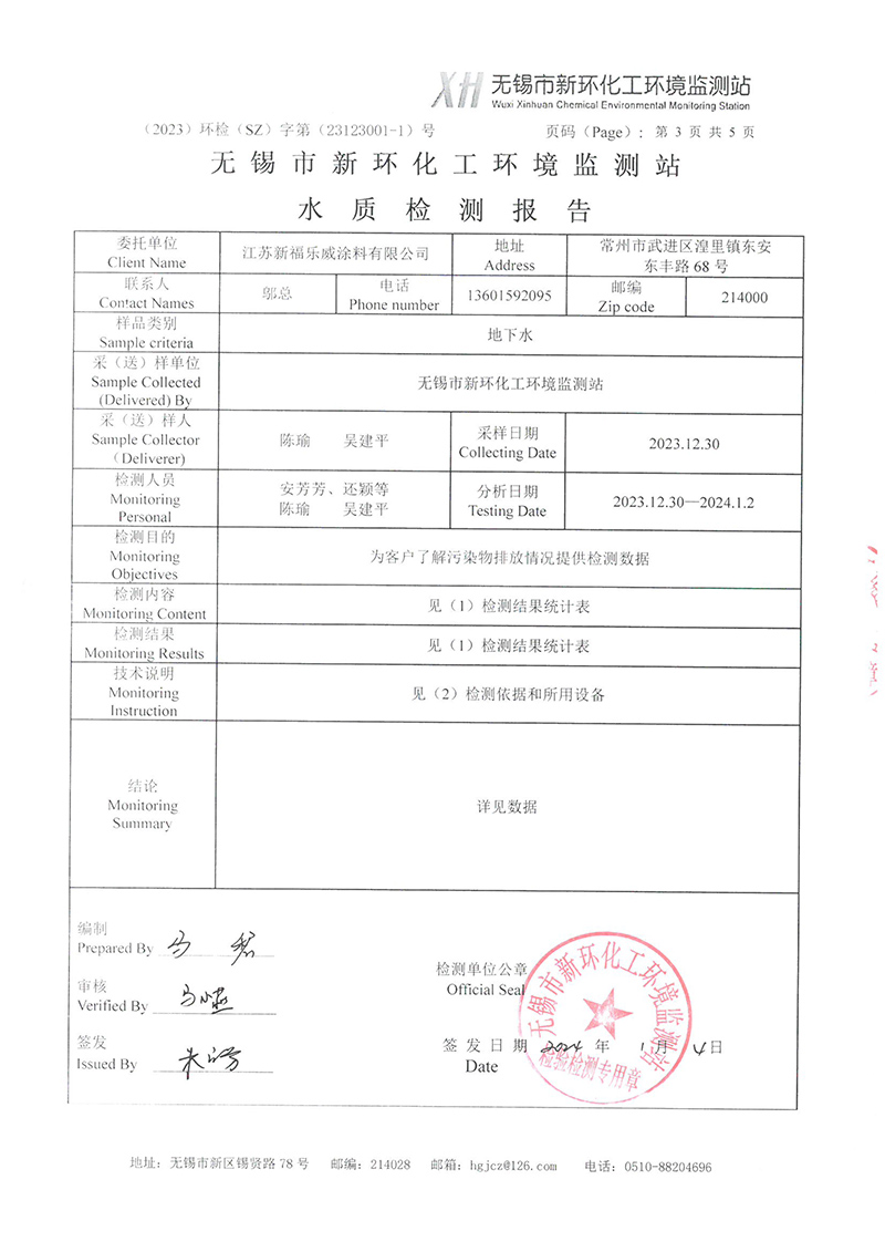 XS2311024W江苏新福乐威涂料有限公司-水质